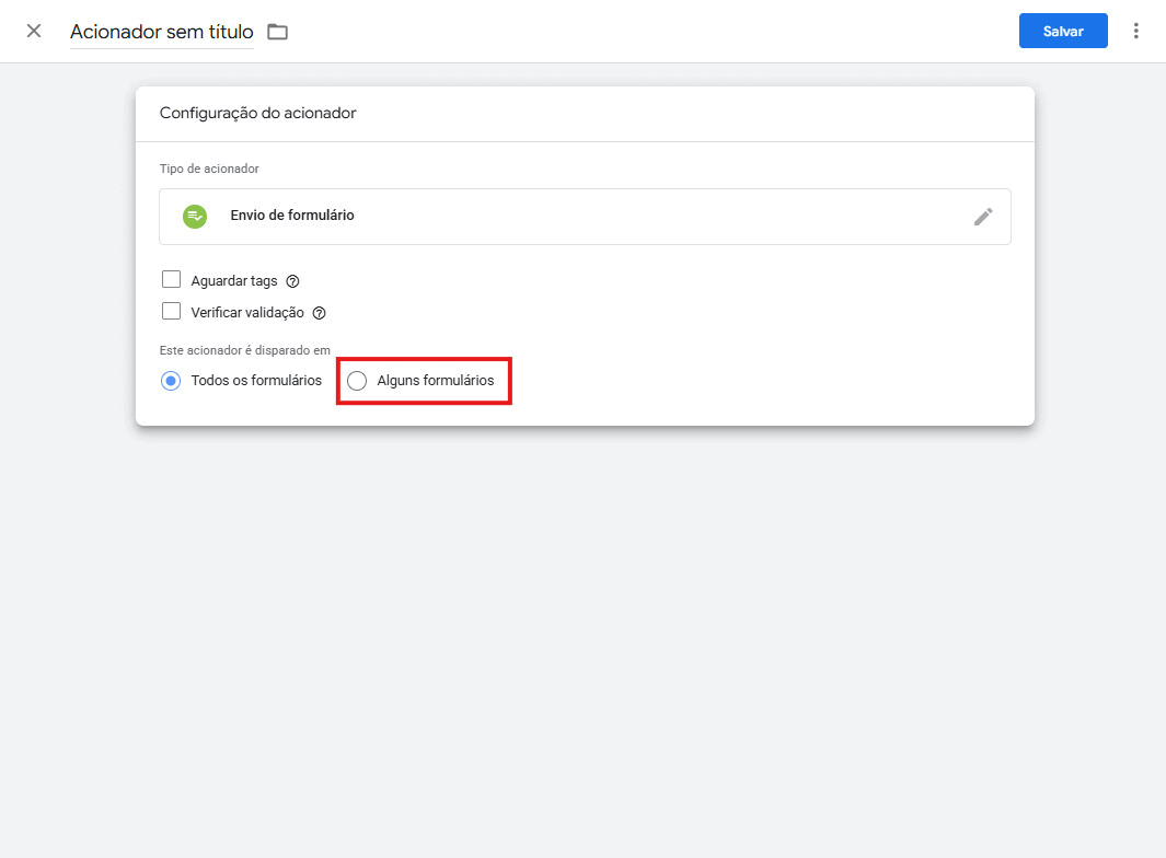 Inicialmente, utilize a condição “contém form”.