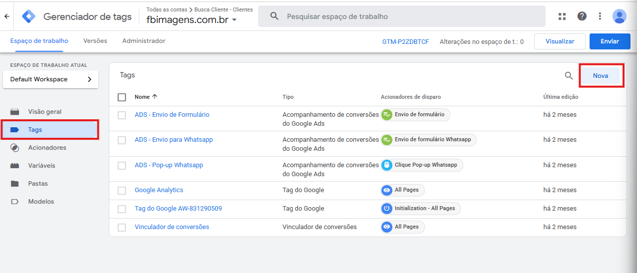 - Acesse o Tag Manager do cliente