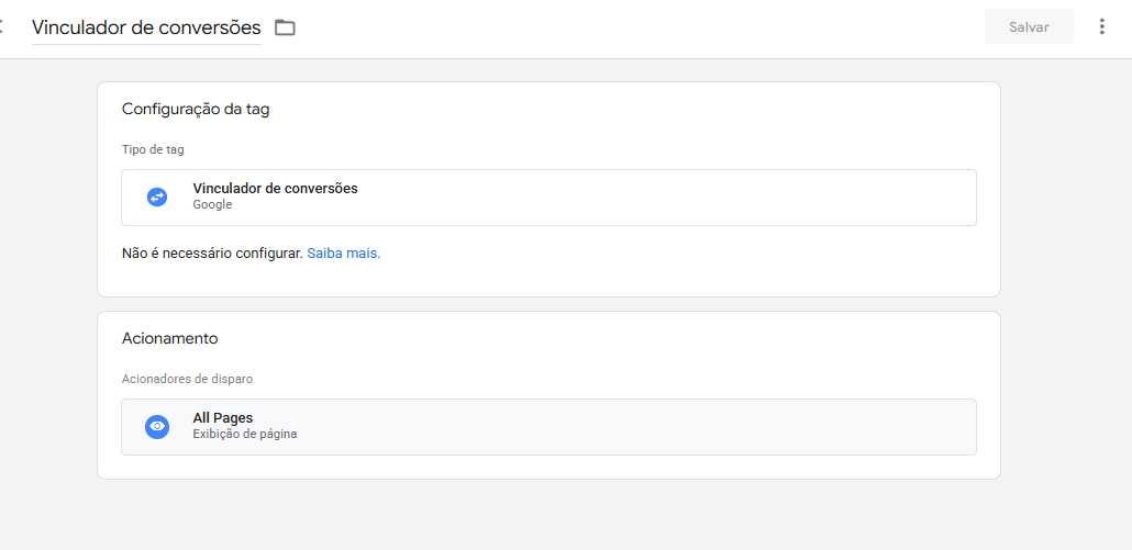 - Selecione Vinculador de Conversões