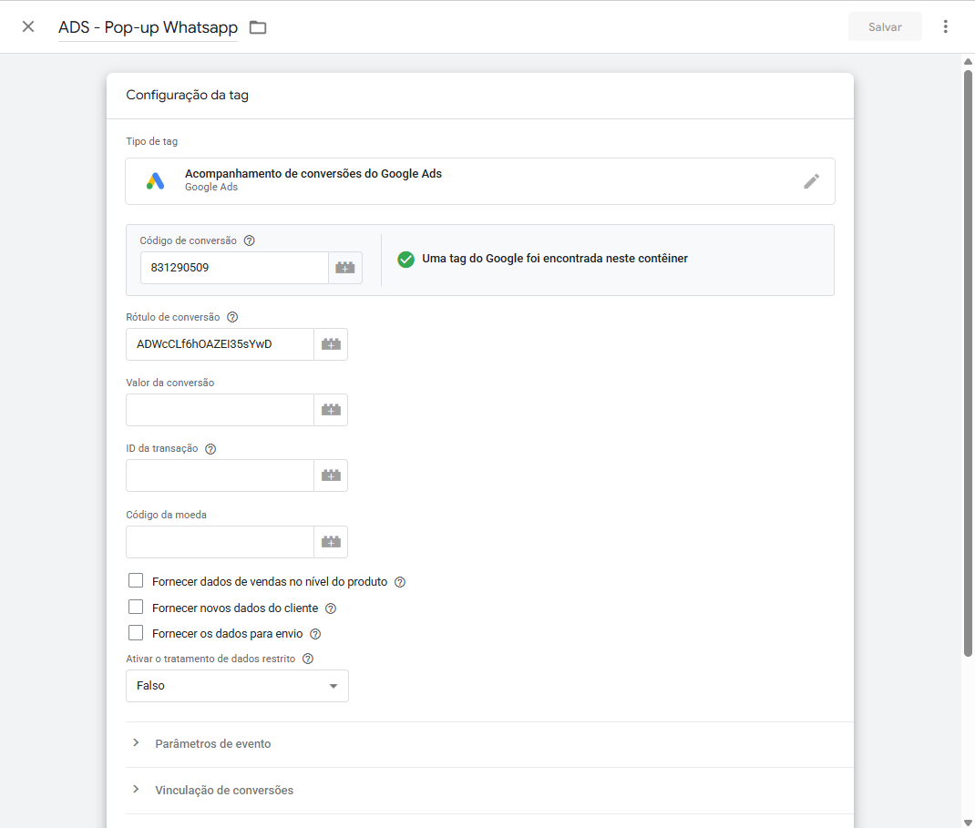 Configuração de Conversões no Google Tag Manager