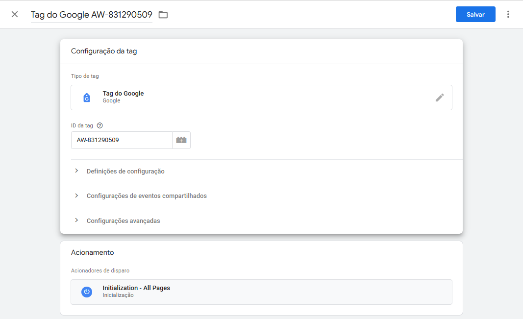 2. Criar a Tag de Conversão