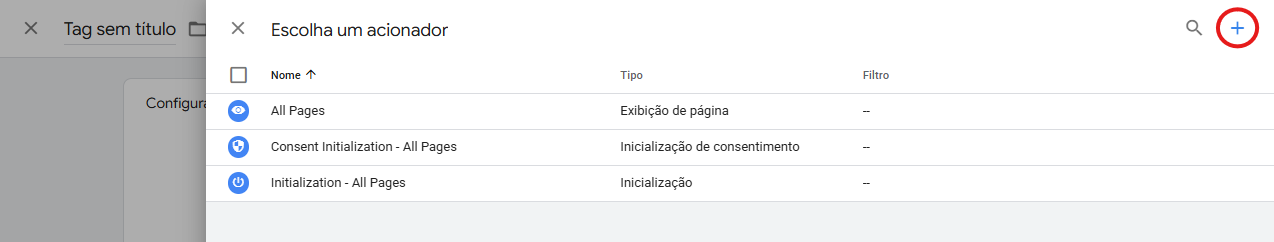 - Clique no botão ”+” para criar um novo acionador