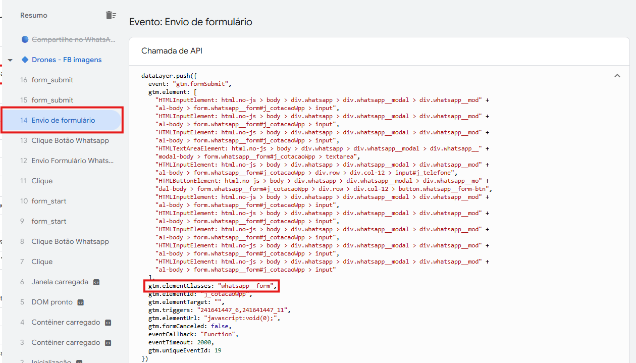 - Clique no evento disparado (ex: ADS - Envio para Whatsapp)