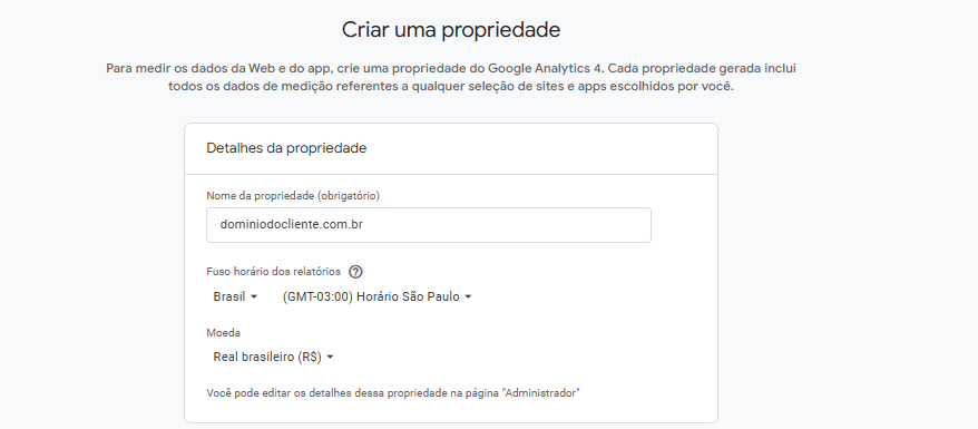 bcrelatorios - Clique em Administrador → Criar → Propriedade