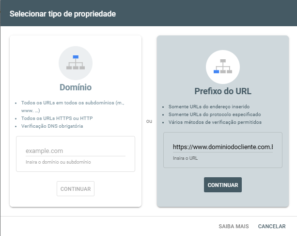 bcrelatorios5 - Clique em Adicionar propriedade → Prefixo URL